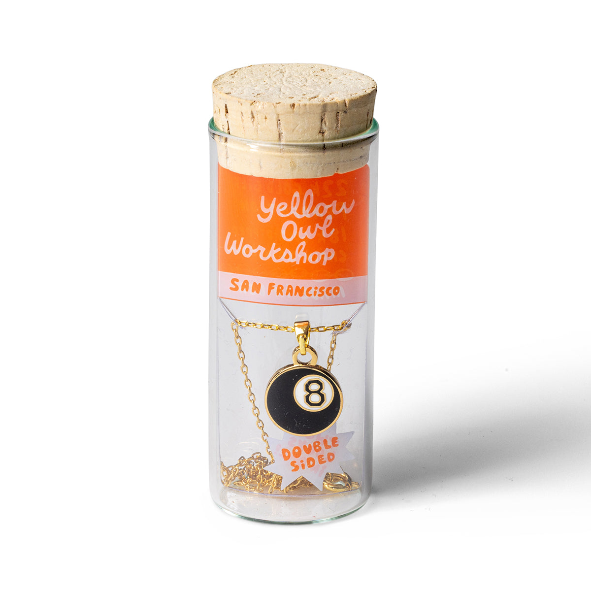 Our brand new double-sided pendants let you choose which colorful side to wear. Yup, that's right! Two designs for the price of one. Just like our other pendants, these double-the-fun pieces are on an 18k gold-dipped 20" chain (50.8 cm) with clasp. Presented in our signature glass vial and cork packaging on a clear insert so you can see both designs.