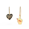 Adding to our collection of bold, swear-word laced jewelry and accessories, these earrings have a crystal clear “F*ck Off” message with heart-shaped and middle finger charms. Wear one on each ear, or combine them in a double ear piercing!