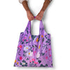 This design features artist Sarah Edmonds and her partner, Tammy Lawrence, who run Banquet Atelier and Workshop in Vancouver, Canada. Here is a whimsical floral design set to a vibrant lavender background; an easily-packed and super useful companion for your grocery store trips, farmers' market runs, and beach days.
