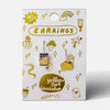 Presented in a matchbook style gold foil box, our signature mismatched earrings feature 18k gold gilt enamel on hanging earwire. Hypoallergenic, nickel, lead, and cadmium-free.